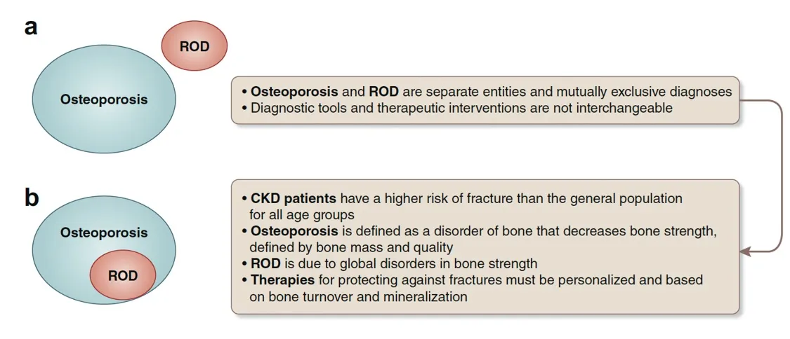(b) Osteoporose associada à DRC é uma definição inclusiva de ODR e osteoporose que reconhece o impacto global da doença renal na força óssea. Essa definição pode servir melhor aos esforços clínicos para tratar distúrbios ósseos associados à DRC e informar e impactar a pesquisa sobre a patogênese subjacente ao risco de fraturas em pacientes com DRC.
