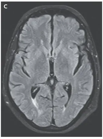 **Dicas importantes**: Apesar do nome da síndrome, a PRES não afeta apenas as partes posteriores do cérebro. Não esquecer que pode estar associada à **hipertensão**, **encefalopatia urêmica, eclampsia** ou **terapia imunossupressora**, como foi o caso deste paciente.