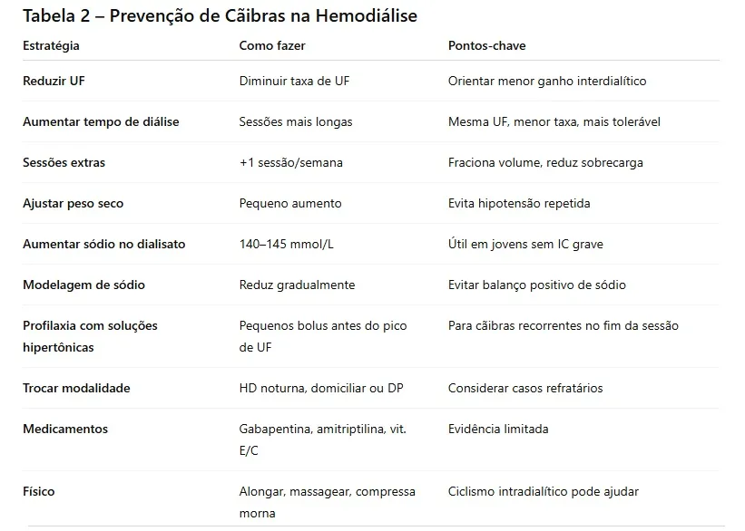As cãibras musculares são complicações comuns e clinicamente relevantes na hemodiálise (HD), frequentemente levando à interrupção precoce das sessões, com impacto na adequação da diálise e risco de hipervolemia.