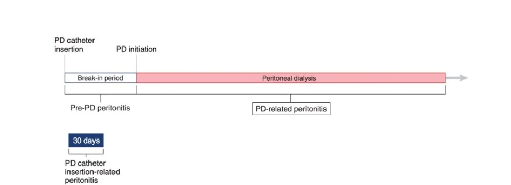 * Peritonite relacionada à inserção do cateter: ocorre dentro de 30 dias da passagem do cateter