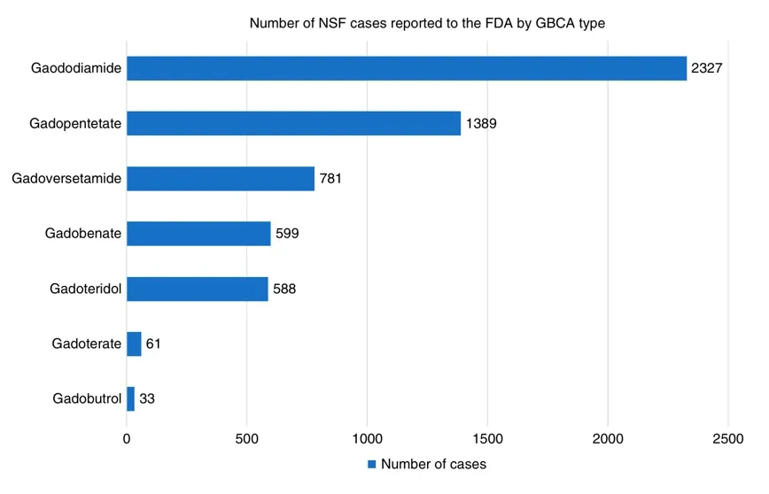 Abreviações: FDA = Food and Drug Administration (Agência Reguladora dos EUA); GBCA = agente de contraste à base de gadolínio; NSF = fibrose sistêmica nefrogênica.