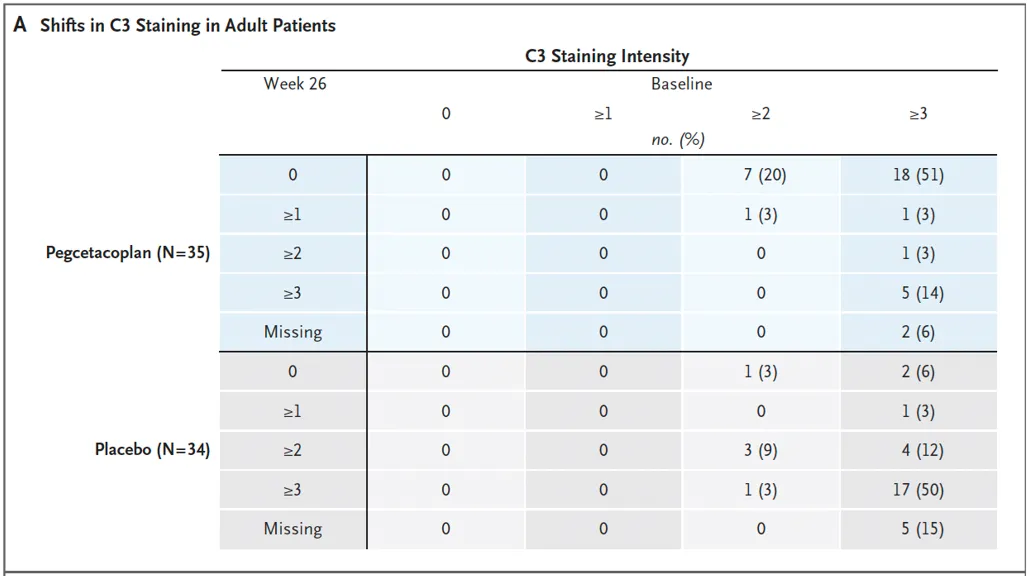 **Referência**: Fakhouri F, Bomback AS, Ariceta G, et al. Trial of Pegcetacoplan in C3 Glomerulopathy and Immune-Complex MPGN. NEJM, 2025 [**[link](https://www.nejm.org/doi/full/10.1056/NEJMoa2501510?query=featured_nephrology)**]