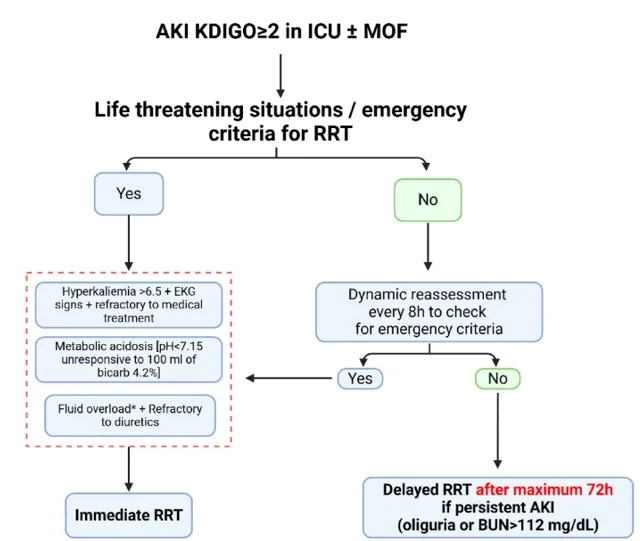 Sim. Os estudos AKIKI e STARRT-AKI mostraram que esperar até 72 horas após o início da AKI estágio 3 é razoável, mas ultrapassar esse limite pode ser prejudicial, especialmente se a oligúria persistir e a ureia ultrapassar 240 mg/dL.