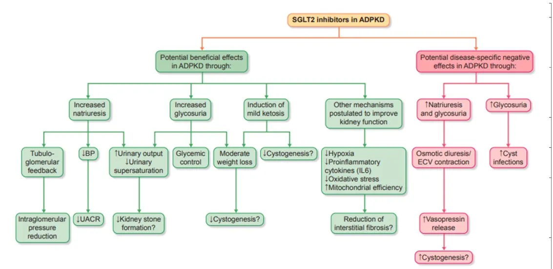 * Infecções urinárias e císticas: embora os grandes trials mostrem risco maior apenas para infecções genitais, o receio com cistos infectados em DRPAD persiste.
