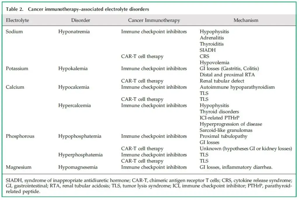 Lise tumoral: precipita hipercalemia, hiperfosfatemia, hipocalcemia e hiperuricemia. Recentemente tem sido associado a novos agentes para tratamento de linfoma de células B como: Venetoclax, o anticorpo monoclonal Obinutuzumab e até mesmo inibidores de checkpoint. Embora os dados sobre tais associações estejam relacionados a relatos de casos e série de casos