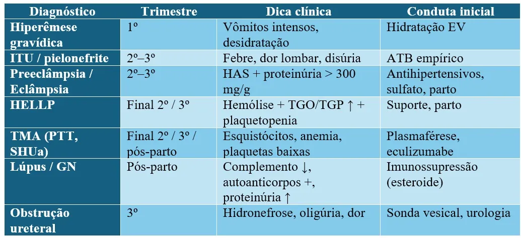 Avaliar IRA na gravidez exige pensar nas causas usuais (pré-renal, obstrutiva, NTA...), mas também em diagnósticos específicos desse contexto.