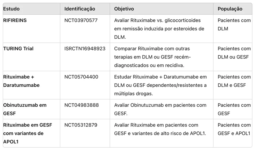 Novos estudos estão sendo conduzidos (tabela abaixo!). E você? Já teve a experiência de utilizar o Rituximabe na sua prática clínica? Como foi essa experiência? Compartilhe conosco!